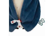 Toute douce, la peluche bleue est simple d'utilisation : grâce au boitier accessible par une ouverture sur le côté, vous pouvez sélectionner 4 bruits blancs (battements de cœur, pluie, vent, sons sous la mer) et enregistrer votre message, comptine, berceuse chantée ...