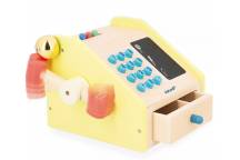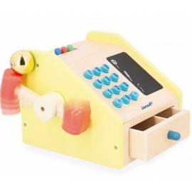 Les touches de la caisse enregistreuse sont en silicone pour un toucher agréable, et la fermeture du tiroir actionne un petit marteau qui fait sonner une cloche, ajoutant du réalisme aux jeux d’imitation.