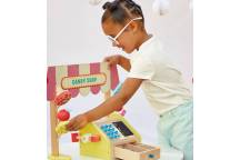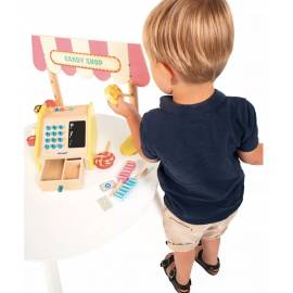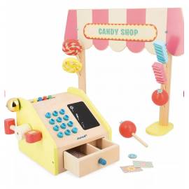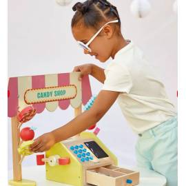 Il offre une expérience de jeu réaliste avec une caisse enregistreuse fonctionnelle et des friandises en bois, permettant aux enfants de vendre des bonbons à leurs amis ou à leur famille.