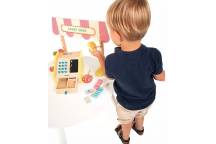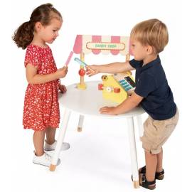 Ce stand de confiseries en bois est conçu pour stimuler l’imagination des petits commerçants en herbe et favoriser les interactions sociales tout en jouant.