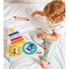 Composée de 3 instruments intégrés – un tambour, une cymbale et un xylophone à cinq tons – cette table permet à votre enfant de découvrir les sons et rythmes de manière interactive.