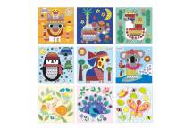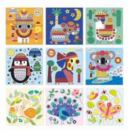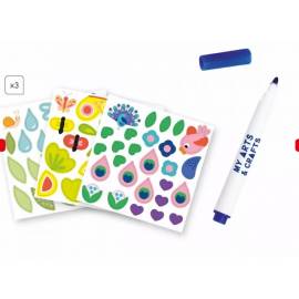 Avec deux techniques créatives distinctes, les enfants auront l’occasion de décorer des tableaux avec des stickers en relief et de colorier des graphismes effaçables, le tout dans un univers d’animaux rigolos aux couleurs pastel.