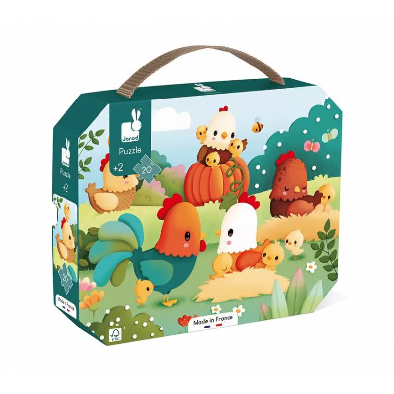 Fabriqué en France, ce puzzle est réalisé en carton certifié FSC™ et imprimé avec des encres végétales, respectueuses de l’environnement. Découvrez l’univers de la ferme avec Janod !