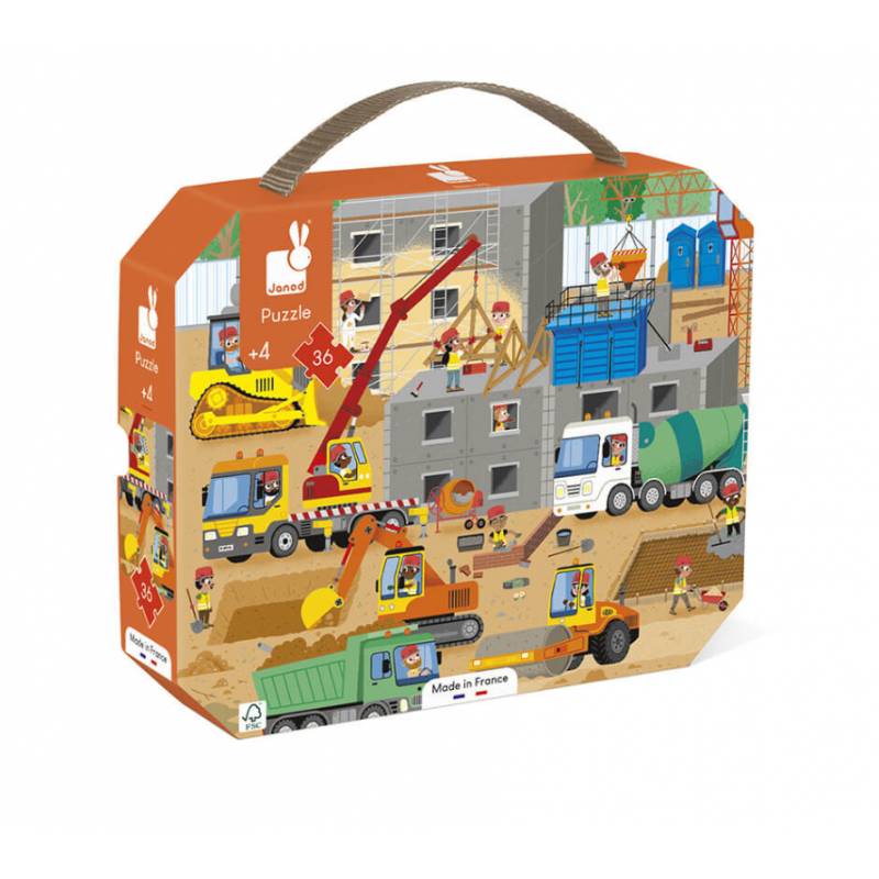 Avec ce puzzle en carton de 36 pièces, les enfants dès 4 ans s’immergent dans le monde fascinant du chantier. Richement illustré avec des engins de construction et une multitude de métiers, ce puzzle est parfait pour les petits passionnés de véhicules et de travaux.