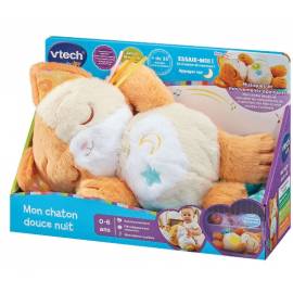 Mon Chaton Douce Nuit est une adorable peluche interactive conçue pour apaiser et divertir les bébés avant l'heure du coucher.
