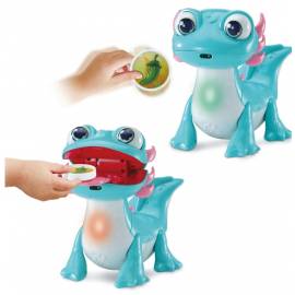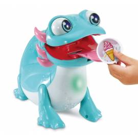 Les enfants peuvent placer une pièce aliment sur sa langue et observer la réaction de Zébulon, qui est très expressif : il adore les fraises mais déteste les chaussettes !