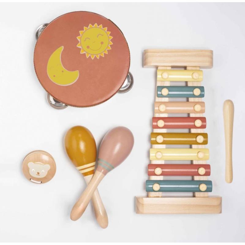Offrez à votre bébé une première immersion dans l'univers musical avec ce coffret de 4 instruments en bois, spécialement conçu pour favoriser l'éveil et la créativité.