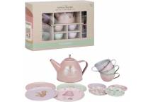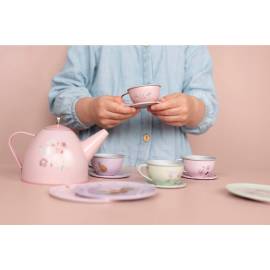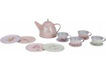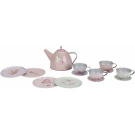 Prenez place et laissez place à l'imagination avec cet adorable service à thé en étain de la collection Fairy Garden! Parfait pour les jeux de rôle, ce service à thé invite les enfants à organiser des thés magiques avec ses quatre tasses à thé, quatre soucoupes, quatre assiettes à dessert et une théière avec son couvercle. En plus de stimuler la créativité et l’imagination, il aide à développer la motricité fine de votre enfant. Ce service en étain est un cadeau parfait pour éveiller les moments de partage et de convivialité. À ranger au sec après utilisation, il est livré dans une jolie boîte à fenêtre pour un rangement facile.