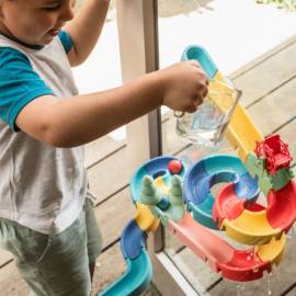 Les petits ingénieurs en herbe adoreront concevoir leur propre parcours de billes avec ce jouet de bain interactif. Ce jouet éducatif comprend 25 pièces configurables et permet de créer un toboggan aquatique pour faire descendre des billes aux visages amusants. Parfait pour l'heure du bain, il aide à développer la motricité fine, la coordination œil-main et enseigne la relation de cause à effet de manière ludique.