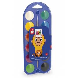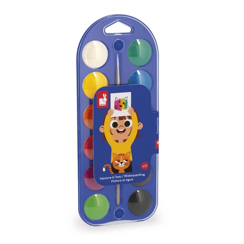 Le coffret comprend 12 pastilles de peinture aux couleurs vives et un pinceau, pour peindre dès l’ouverture. Selon la quantité d’eau utilisée, l’enfant peut créer des effets opaques ou aquarellés, pour varier les rendus et expérimenter différentes techniques.