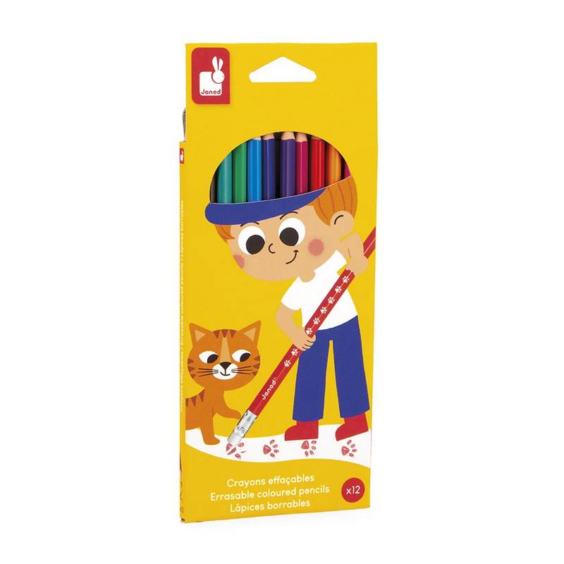 Ce pack de 12 crayons de couleur effaçables est idéal pour les enfants à partir de 3 ans. Chaque crayon est équipé d’un embout gomme, parfait pour corriger les petites erreurs sans frustration. Leur mine de qualité offre une bonne couvrance et des couleurs lumineuses. Grâce à leur forme triangulaire ergonomique, ces crayons sont faciles à tenir, même pour les plus jeunes.
