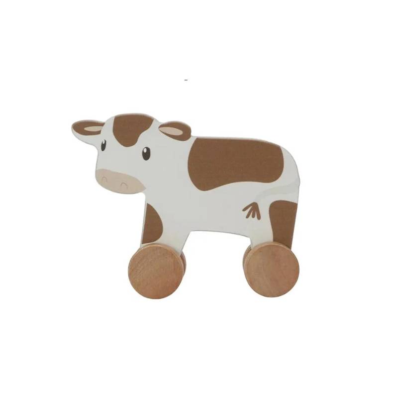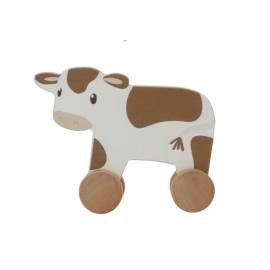 Cette adorable vache en bois sur roulettes est le compagnon idéal des tout-petits dès 12 mois. Facile à manipuler grâce à sa forme arrondie et ses roues lisses, elle stimule la motricité, l'imagination et la coordination des jeunes enfants.