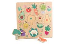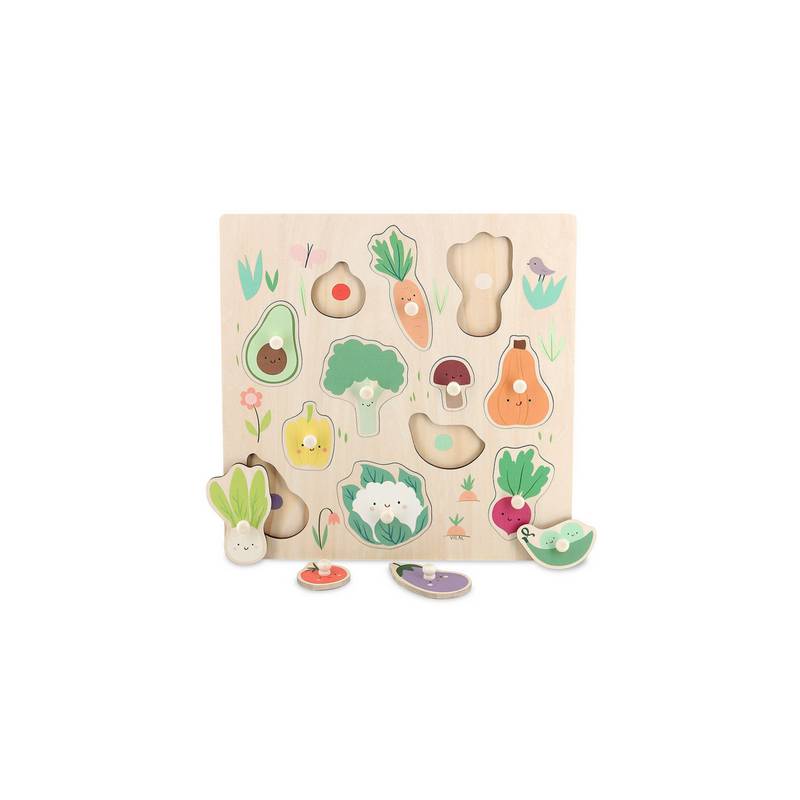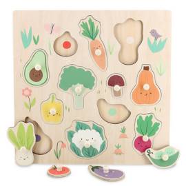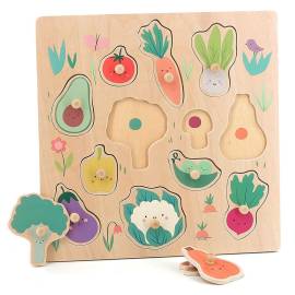 Éveillez la curiosité de votre enfant et faites-lui découvrir les légumes du jardin grâce à ce puzzle d’encastrement en bois coloré et éducatif.