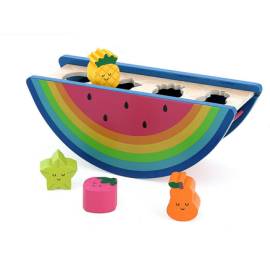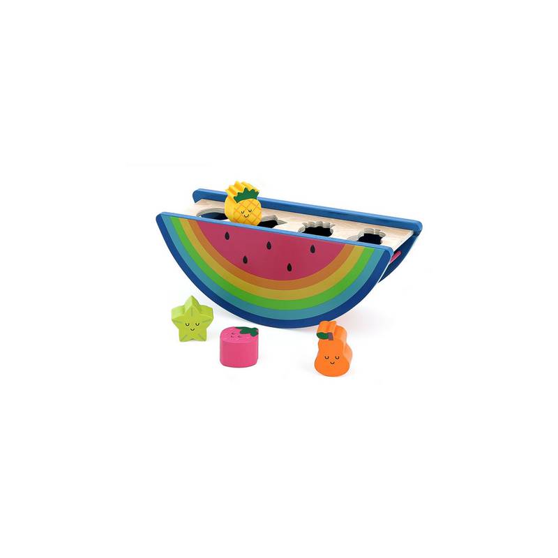 Avis aux gourmandes et aux gourmands ! Voici notre pastèque encastrement en bois dessinée avec originalité par Andy Westface. Cette jolie boîte à formes en forme de pastèque et ses 4 fruits – poire, ananas, carambole et fraise – invitent votre enfant à développer sa logique et sa motricité fine. Chaque fruit ne peut entrer que dans son emplacement dédié, stimulant ainsi patience, concentration et coordination. Un jouet d’éveil Montessori aussi amusant qu’éducatif.
