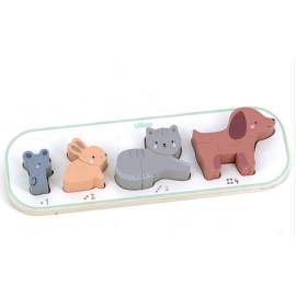Contenu : plateau + animaux en bois décomposés en 1, 2, 3 ou 4 pièces