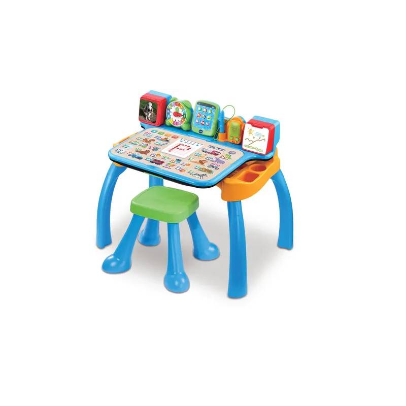 Musical : le bureau se transforme en table musicale avec enceinte intégrée. L’enfant découvre les notes, 3 styles (Pop, Techno, Dance), 5 instruments et compose ses propres mélodies grâce aux touches de piano et aux effets sonores.