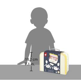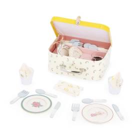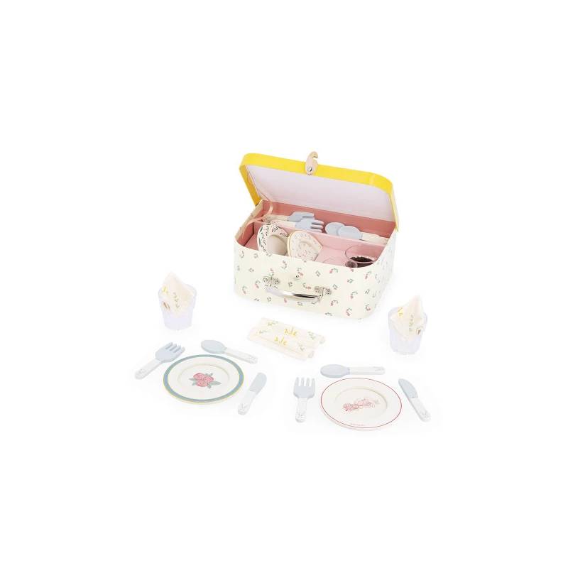 Facile à transporter grâce à sa valise décorée avec poignée en métal, elle s’emporte partout : au salon, dans le jardin ou chez mamie pour un déjeuner improvisé !