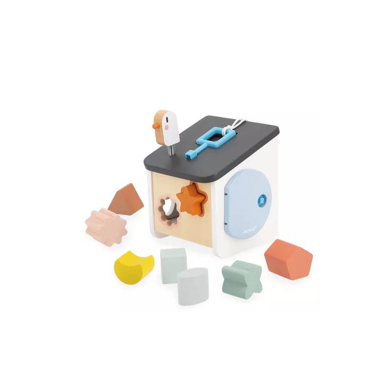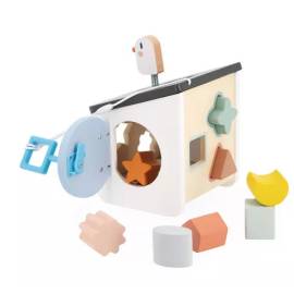 Bienvenue à la maison, petits oiseaux ! Cette boîte à formes en bois, au design inspiré d’une jolie cabane à oiseaux, est spécialement conçue pour accompagner les bébés dès 18 mois dans leurs premiers apprentissages.