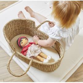 Cette poupée brune séduit par son petit chignon soigné, son ruban délicat autour du cou, et sa texture toute douce idéale pour les câlins. Légère et facile à attraper, elle deviendra vite la compagnonne favorite des tout-petits.