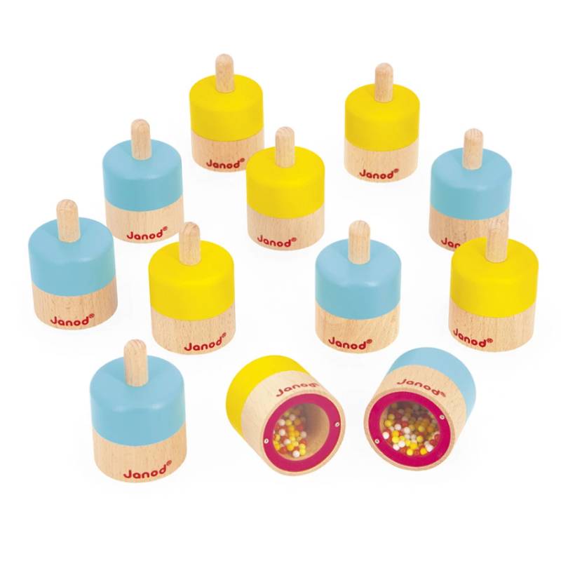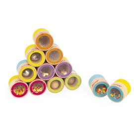 Les joueurs doivent retrouver 6 paires identiques parmi les 12 pièces du jeu en secouant les cylindres et en tendant l’oreille.