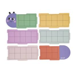 Les enfants commencent par identifier les lettres, puis agrandissent leur chenille au fur et à mesure qu’ils maîtrisent l’écriture. Grâce aux cartes illustrées, ils associent également sons et lettres pour former leurs premiers mots.