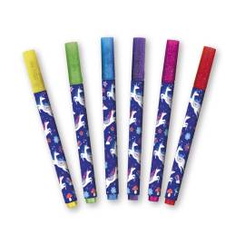 Parfaits pour écrire, colorier ou décorer, ces feutres colorés aux tons jaune, rouge, vert, rose, bleu et violet laissent une touche scintillante sur chaque trait.