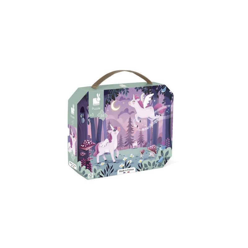 Ah, les licornes ! Ce puzzle illustré de 54 pièces transporte les enfants dès 5 ans dans un univers enchanteur au cœur d’une forêt magique peuplée de créatures fantastiques. Mesurant 50 x 40 cm, il invite à la rêverie et au partage en famille autour d’un moment de calme et de concentration.