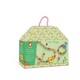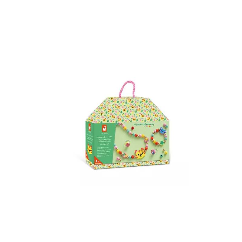 Avec ce kit créatif en bois, les enfants dès 4 ans réalisent facilement une parure complète : 2 bagues, 1 collier et 1 bracelet. Sur le thème de la jungle, ce coffret coloré stimule la motricité fine, la créativité et la patience tout en permettant d’apprendre à créer des suites de couleurs ou de tailles.