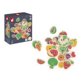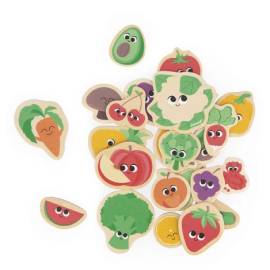 24 magnets en bois sur le thème des fruits et légumes