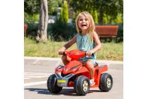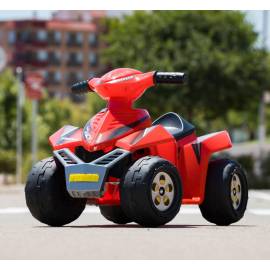 Le Quad Rouge Feber est spécialement conçu pour les enfants à partir de 12 mois. Léger, stable et sûr, il offre une expérience de conduite amusante et adaptée aux plus petits. Grâce à sa pédale d’accélération par bouton, votre enfant profite de ses premières balades motorisées en toute confiance.