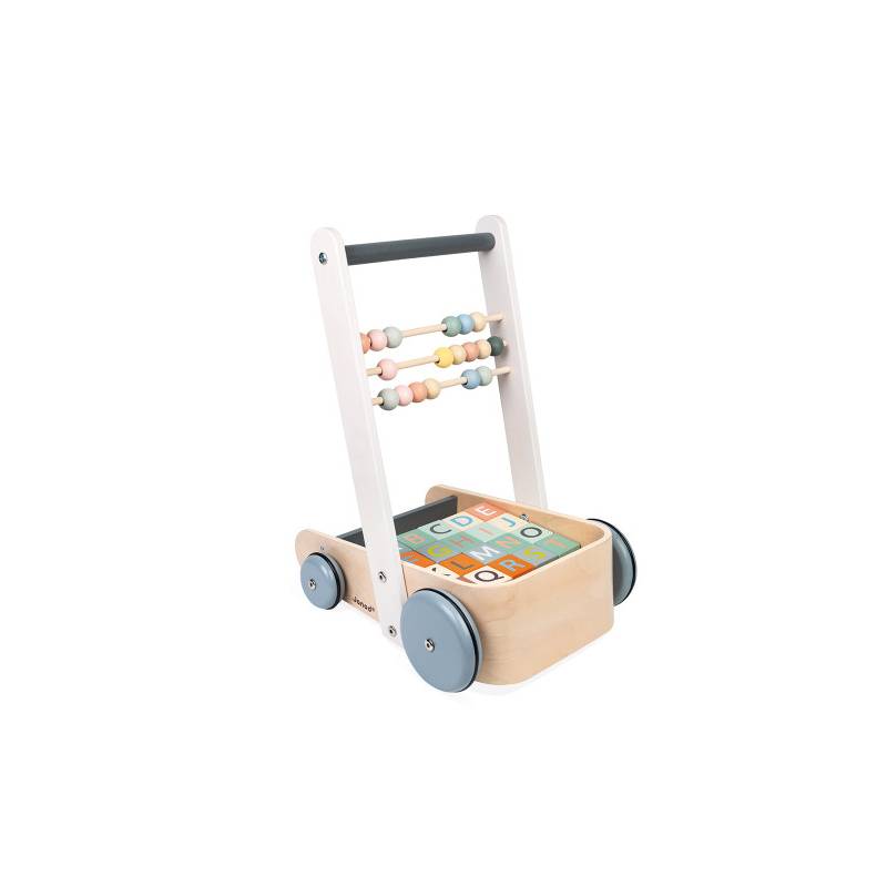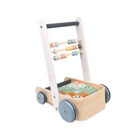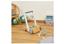 Le chariot dispose également de trois rangées de boulier, parfaites pour initier les tout-petits au calcul et à la manipulation des objets. Ses roues silencieuses dotées d’une bande en caoutchouc assurent un déplacement fluide et discret, tandis que le système anti-bascule garantit une stabilité optimale lors des premiers essais de marche.