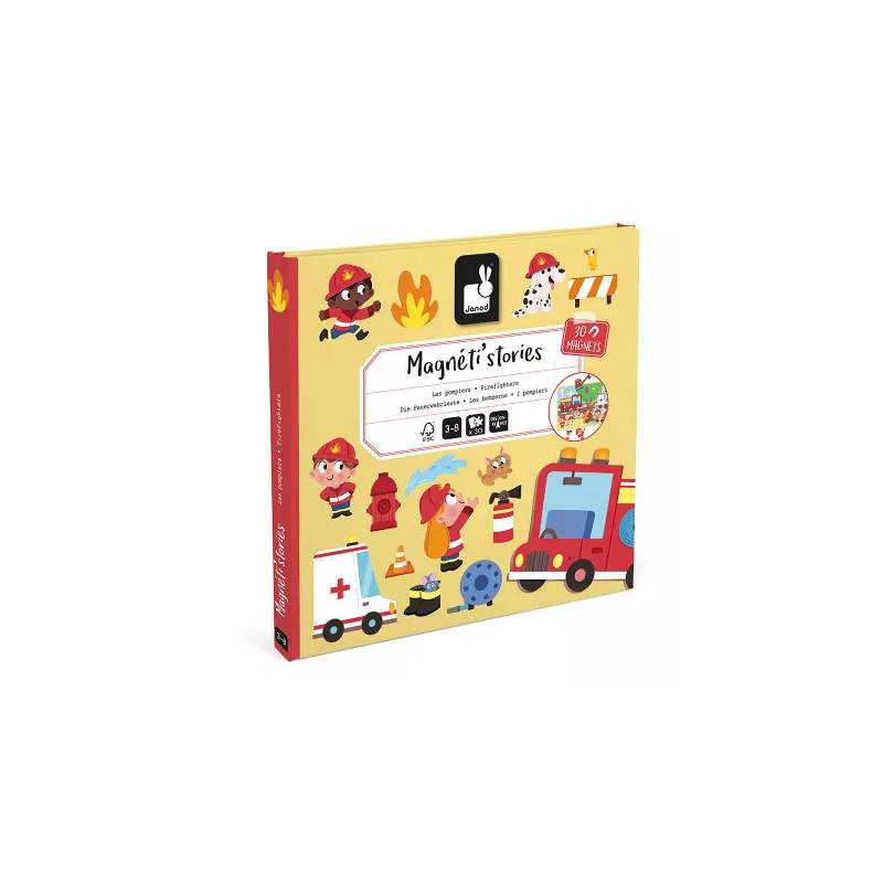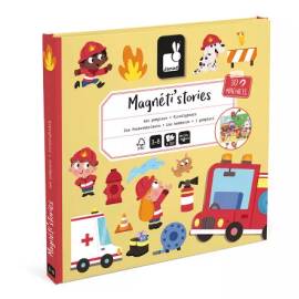 Ce coffret comprend un décor illustré coloré représentant la vie de la caserne et 30 magnets à disposer librement. Chaque aimant devient un personnage ou un élément de l’histoire : le camion rouge, les flammes, la petite fille à consoler ou encore le chaton à sauver. Au fil de ses jeux, votre enfant crée, invente et raconte ses propres aventures.