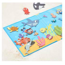 Chaque aimant invite à inventer de nouvelles histoires : les poissons colorés s’amusent, les étoiles de mer échangent des regards complices, et les plongeurs découvrent un monde plein de vie. En manipulant les pièces, votre enfant développe sa motricité fine, sa coordination et stimule son imaginaire.