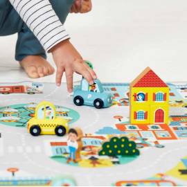 Ce food-truck fait partie de la collection Cross Roads, un univers de tapis de jeu, circuits et véhicules en bois conçus pour stimuler la créativité et encourager le jeu d’imitation. Il s’associe parfaitement au tapis de jeu Ville, mais peut aussi rejoindre les autres éléments de la gamme pour créer un univers urbain riche et coloré.