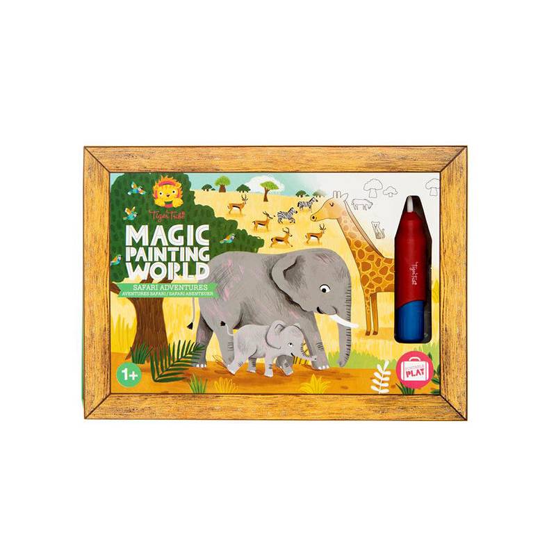 Le set de coloriages magiques Aventures Safari de Tiger Tribe est une parfaite initiation au coloriage pour les tout-petits. Grâce au pinceau magique à remplir d’eau, les enfants passent simplement sur les dessins blancs et voient apparaître, comme par enchantement, des scènes colorées et vivantes représentant la savane et ses animaux.