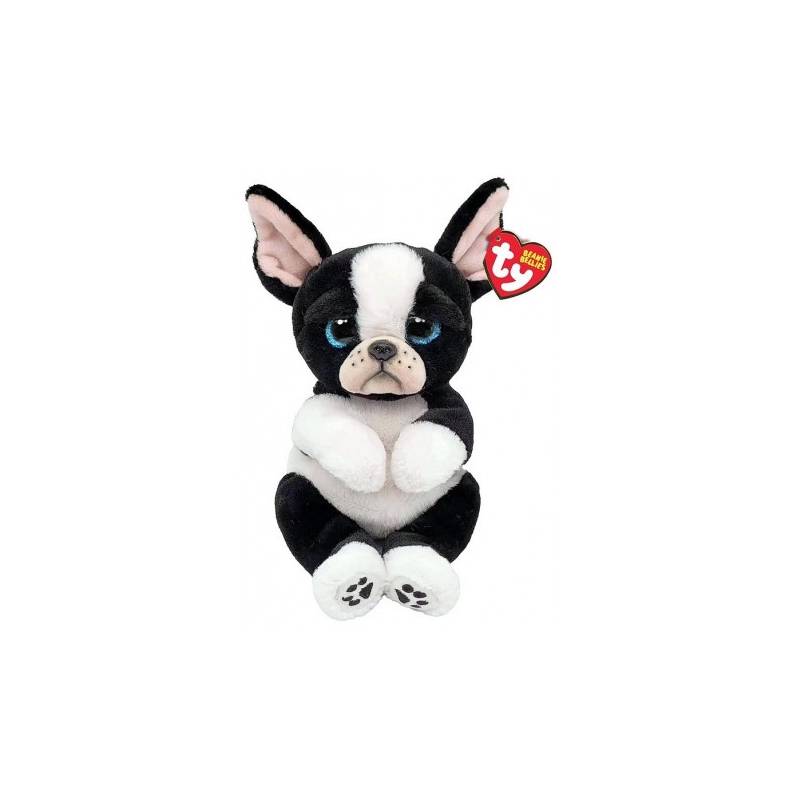 Découvrez Tink, la peluche Bouledogue français de la collection Ty Beanie Bellies, mesurant environ 23 cm. Avec son pelage tout doux et ses grands yeux bleus pailletés emblématiques de la marque Ty, cette peluche séduit immédiatement par son expression attendrissante et son style unique.