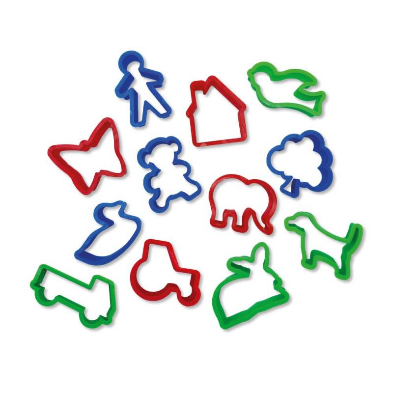 12 moules à pâte à modeler, de formes et de couleurs variées