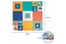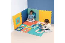 Accrochées les unes aux autres, les 7 grandes dalles et le 11 moyennes dalles offrent aux enfants un superbe tapis de jeu de 180 x 180 x 1,2 cm. Idéal pour marcher à quatre pattes ou pour s’amuser avec ses jouets préférés ! Solides et confortables (épaisseur : 1,2 cm), les dalles s’encastrent les unes aux autres et assurent la sécurité de l’enfant.