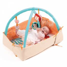 Activités Sensorielles : le tapis d’éveil est doté de trois activités sensorielles spécialement conçues pour encourager le développement cognitif et sensoriel du bébé. Ces activités comprennent un hochet, un miroir et une activité sonore.