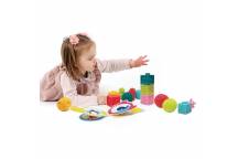Les jouets sont faciles à prendre en main. Les enfants exercent ainsi la souplesse et la capacité de saisie de leurs doigts, mais également leur concentration pour l’empilement notamment. De quoi développer la dextérité, la motricité, l’observation et la patiente.