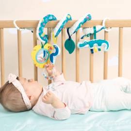 Une jolie spirale d’activités d’éveil qui s’accroche à de multiples supports. Composée de plusieurs activités (anneau de dentition, miroir, pouêt pouêt).