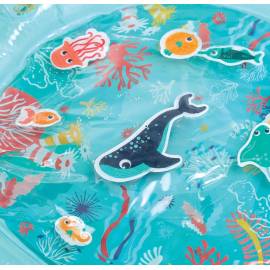 Le Tapis d'Eau Océan de Ludi est un tapis de jeu gonflable qui promet d'éveiller les sens de votre bébé tout en développant ses capacités motrices de manière ludique.
