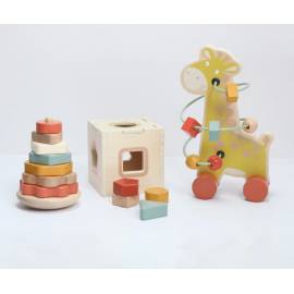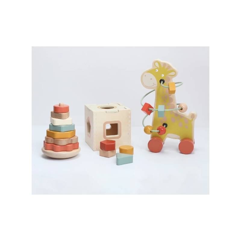 Offrez à votre bébé une expérience d'éveil complète avec ce coffret de 3 jouets en bois, parfait pour stimuler ses sens et sa réflexion tout en s'amusant.