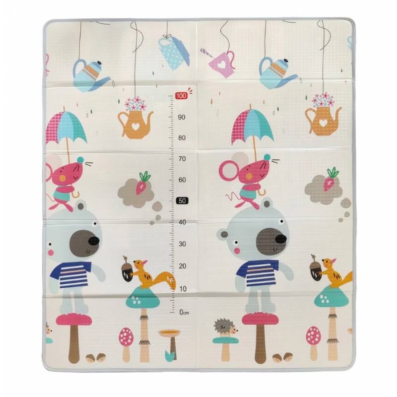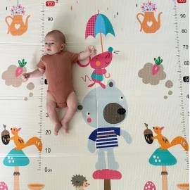 Le grand tapis d’éveil réversible Tinéo est conçu pour offrir à bébé un espace de jeu ludique et sécurisé. Avec ses deux faces imprimées, il stimule la curiosité et l’éveil des tout-petits :