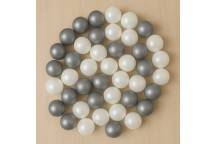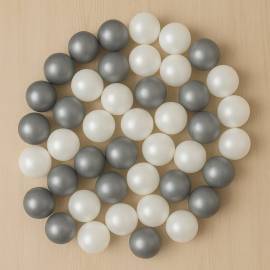 Ce lot de 100 balles en plastique souple et résistant est parfait pour remplir votre piscine à balles (vendue séparément). Avec leur finition satinée et leurs couleurs élégantes (gris perle et blanc nacré), elles s'intègrent aussi bien dans une salle de jeux, une chambre d'enfant que lors d'événements festifs.