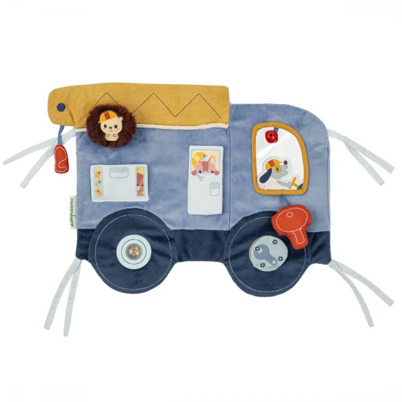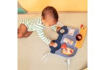 Offrez à bébé un moment de jeu riche en découvertes avec ce panneau d’activités sur le thème du bricolage. Dès 3 mois, Jules le chien embarque les tout-petits à bord de son camion rempli de surprises sensorielles.