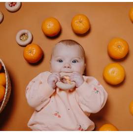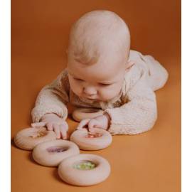 Le hochet sensoriel en forme de donut est conçu pour stimuler les sens des tout-petits tout en garantissant une prise en main confortable. Fabriqué en bois de hêtre naturel, il est sans produits toxiques et résistant aux morsures, idéal pour les bébés curieux et gourmands.