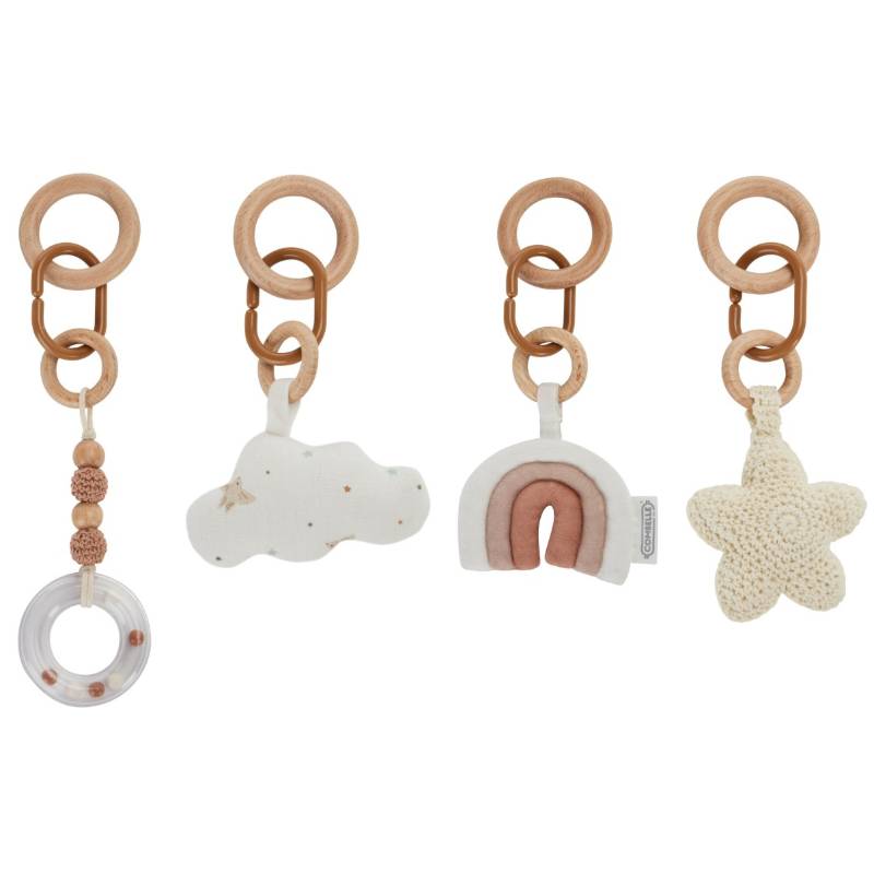 Stimulez les sens de bébé dès la naissance avec ce joli set d’activités à suspendre, conçu pour être accroché à une arche de jeux, notamment l’arche en bois de hêtre Combelle. Composé de 4 jouets sensoriels doux et ludiques, il transforme chaque moment d’éveil en une belle découverte.