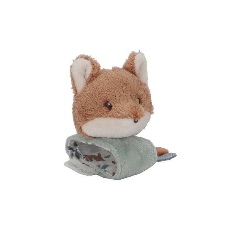 À chaque geste, le hochet émet un doux cliquetis qui stimule l’ouïe et incite bébé à bouger ses mains. Le renard câlin sur le bracelet attire l’attention visuelle, tandis que les petites étiquettes intégrées encouragent la préhension et la découverte tactile.