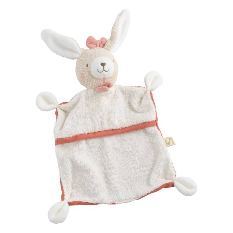 Sa tête de petit lapin et ses quatre coins faciles à attraper en font un objet aussi ludique que réconfortant. Ce doudou mouchoir joue un rôle essentiel dans le développement affectif de bébé en l’aidant à gérer les séparations et à se sentir en sécurité.